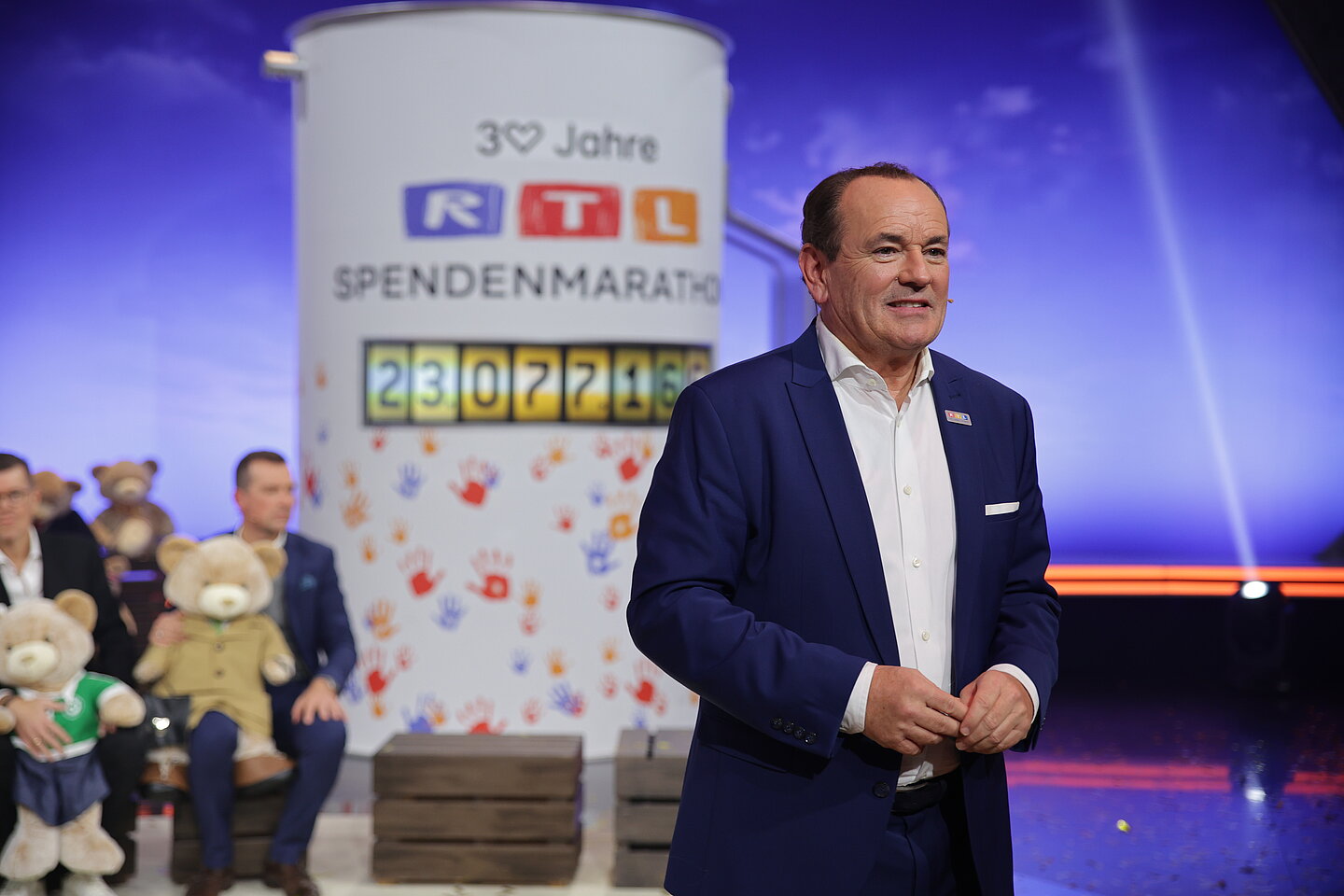 Wolfram Kons bedankt sich bei allen Spenderinnen und Spendern für das spektaukäre Spendenergebnis beim 30. RTL-Spendenmarathon. Foto: RTL / Dirk Borm.