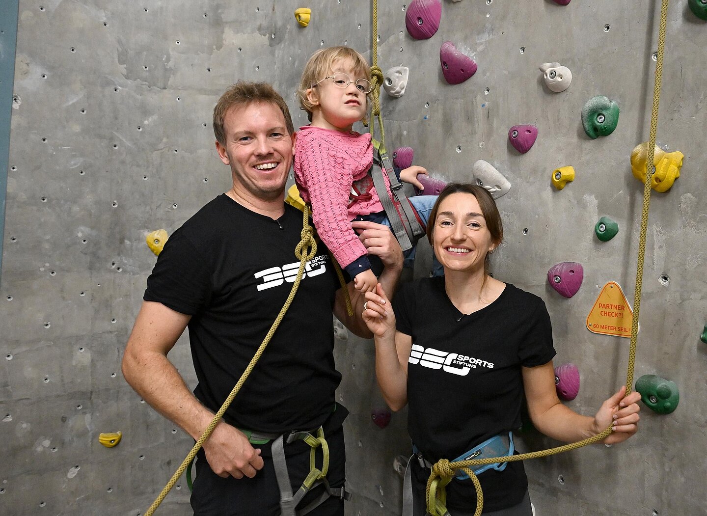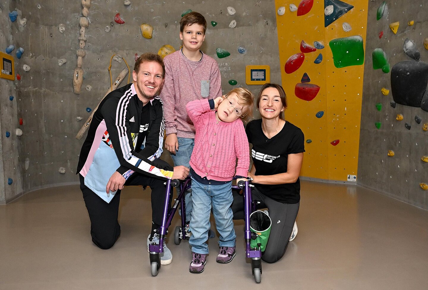 Aus diesem Grund setzen sich Julian Nagelsmann und Lena Wurzenberger für das Projekt „Gemeinsam stark“ der Sports360 Stiftung ein, das gezielt Familien mit Kindern mit Behinderungen durch individuell abgestimmte Freizeitangebote unterstützt. Die beiden Projektpaten kennen die besondere Situation in den betroffenen Familien. Gerade die Geschwisterkinder haben es besonders schwer. Umso mehr ist Julian Nagelsmann von Oskar beeindruckt: „Er ist für viele Kinder in seinem Alter ein tolles Vorbild. Er hat keine einfache Rolle, aber er geht mit seiner Schwester super verantwortungsvoll um – und das ist der springende Punkt: Er ist ja trotzdem noch ein Kind und braucht auch Momente, in denen er Kind sein darf.“ Und in der Kletterhalle, gemeinsam mit Julian Nagelsmann hoch oben an der Wand, darf er genau das.