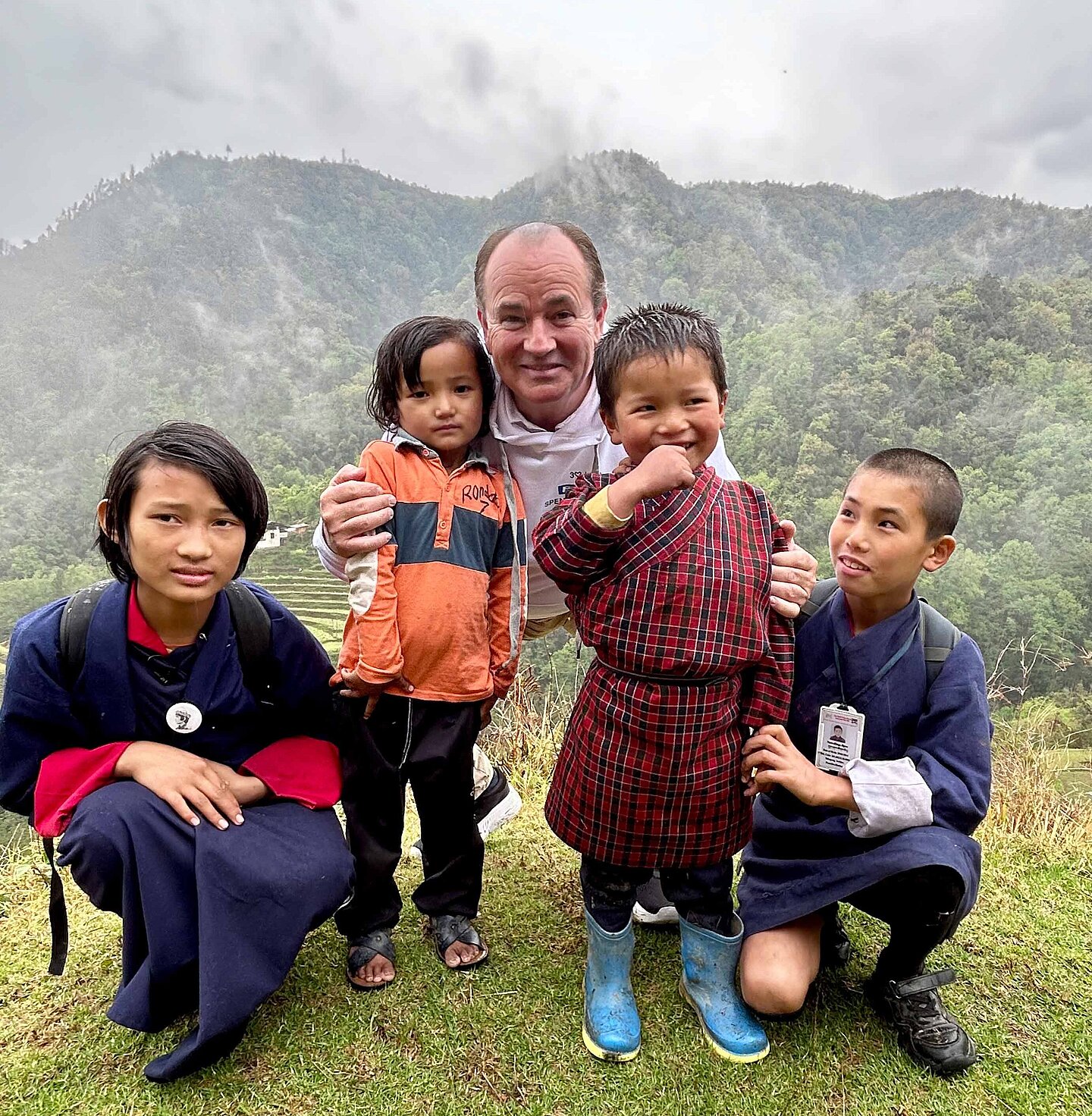 Wolfram Kons mit Schulkindern in den Bergen in Bhutan. Foto: RTL