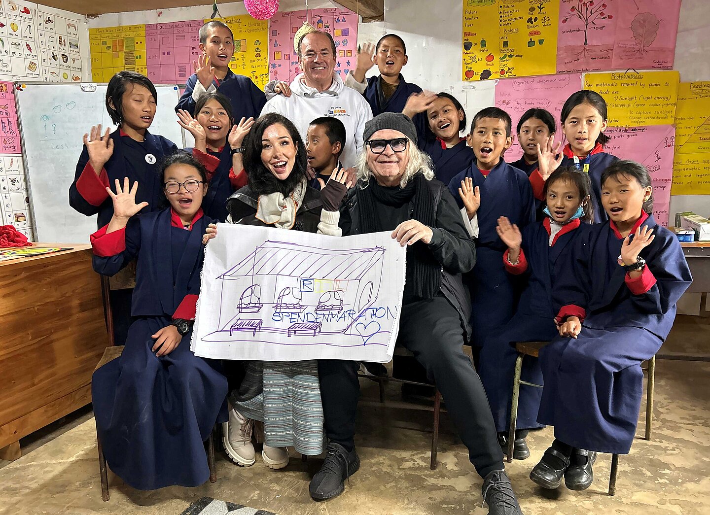 Rita und Thomas Sabo besuchen als Projektpaten der „Stiftung RTL – Wir helfen Kindern e.V.“ die „My Gakidh Village School“ in Bhutan. Foto: RTL